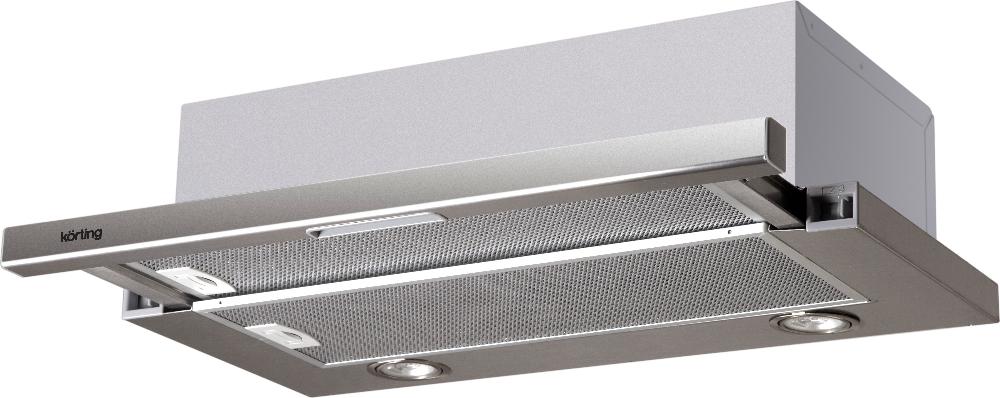 Вытяжка Korting KHP6313X выдвижная, встраивается в навесной шкафчик отвод / циркуляция макс. производительность 600 куб. м/ч ширина для установки 60 см 2 двигателя для максимальной производительности мощность 250 Вт механическое управление тихий двигатель