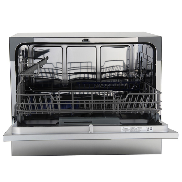 Посудомоечная машина Midea MCFD-55200S компактная, отдельно стоящая, ширина 55 см вместимость: 6 комплектов 6 программ мойки конденсационная сушка таймер отсрочки запуска класс энергопотребления A+ уровень шума при работе 49 дБ