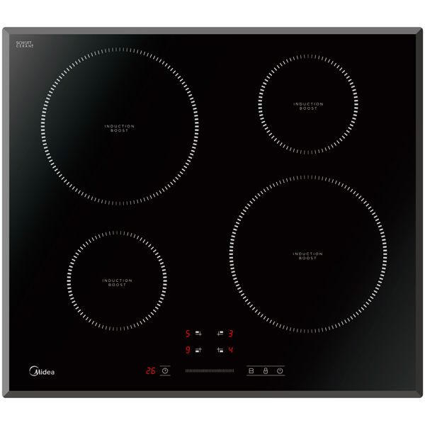 Индукционная варочная панель Midea MIH64721F стеклокерамическая поверхность 4 конфорки независимая установка защита от детей сенсорные переключатели слайдерное управление индикатор остаточного тепла ШхГ: 59х52 см