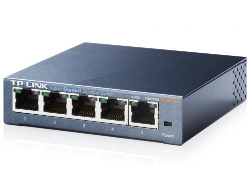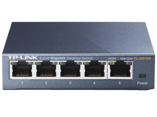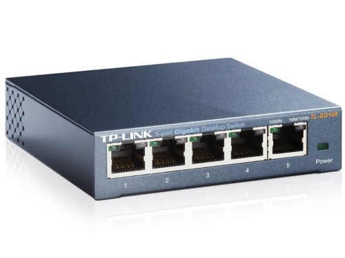 TP-LINK TL-SG105 5-port Gigabit Switch, Black, 5 10/100/1000M RJ45 ports, steel case, QoS, IGMP Snooping