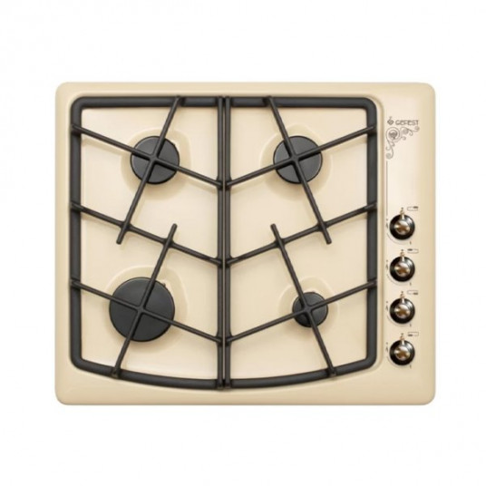 Газовая варочная панель Gefest СН 1211 К71 эмалированная поверхность 4 конфорки независимая установка электроподжиг газ-контроль чугунные решетки поворотные переключатели ШхГ: 59х51 см