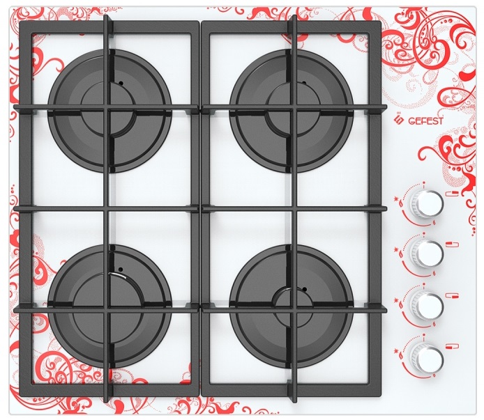 Газовая варочная панель Gefest СВН 2230 K15 поверхность из закаленного стекла 4 конфорки независимая установка электроподжиг газ-контроль чугунные решетки поворотные переключатели ШхГ: 60х52.50 см