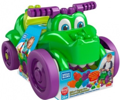 Mattel FP Crocodilul Hraparet FP Машинка-крокодил "Катайся и собирай кубики" Машинка-крокодил "Катайся и собирай кубики" от Mega Bloks сочетает в себе машинку для прогулок, ковшик для сборки кубиков и конструктор. Посадите малыша на машинку - и айда собирать кубики. А потом достаньте их из контейнера и постройте башню. Игра с конструктором развивает воображение, мелкую моторику и координацию. В наборе 26 деталей. Рекомендуемый возраст: 1-3 года