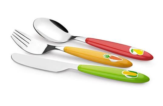 Набор столовых приборов Rondell RD-858 В комплекте идут: ложка, нож и вилка. Дети сразу будут учиться пользоваться столовыми приборами правильно. Набор абсолютно безопасен и безвреден для здоровья, так как изготовлен из лучшей нержавеющей стали и пищевого пластика. На эргономичных ручках приборов изображены разнообразные фрукты и овощи. Набор Anzu яркий и разноцветный. Если вы намерены преподнести ребенку полезный и оригинальный подарок, лучшего варианта не найти! Количество персон 1 Количество предметов 3 Материал нерж. сталь, пластик Ложки столовые 1 Ножи столовые 1 Вилки столовые 1 Производитель Rondell