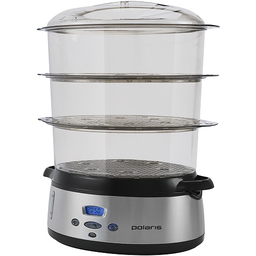 Пароварка Polaris PFS 0305AD Black Благодаря этой модели пароварки, современные технологии станут на страже вашего здоровья. Три чаши, функция «быстрый пар», цифровой ЖК-дисплей и мелко перфорированная решетка сохранят в продуктах полезные микроэлементы и наделят каждое блюдо отменным вкусом. А функции отложенного старта, долива воды и электронное управление помогут готовить легко и просто. Общий объем, л 9 л Количество чаш, шт 3 шт Технология "Быстрый пар" Есть Автоотключение без воды Есть