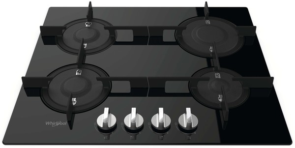 Газовая варочная панель Whirlpool POW 64D2/NB поверхность из закаленного стекла 4 конфорки независимая установка электроподжиг газ-контроль поворотные переключатели ШхГ: 60х50 см