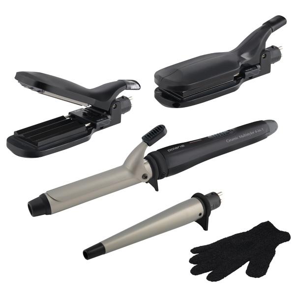 Мультистайлер Polaris PHS 3058K тип щипцов: мультистайлер керамическое покрытие насадки: щипцы для завивки, гофре, для выпрямления мощность щипцов 50 Вт максимальная температура нагрева 200 °CМультистайлер Polaris PHS 3058K