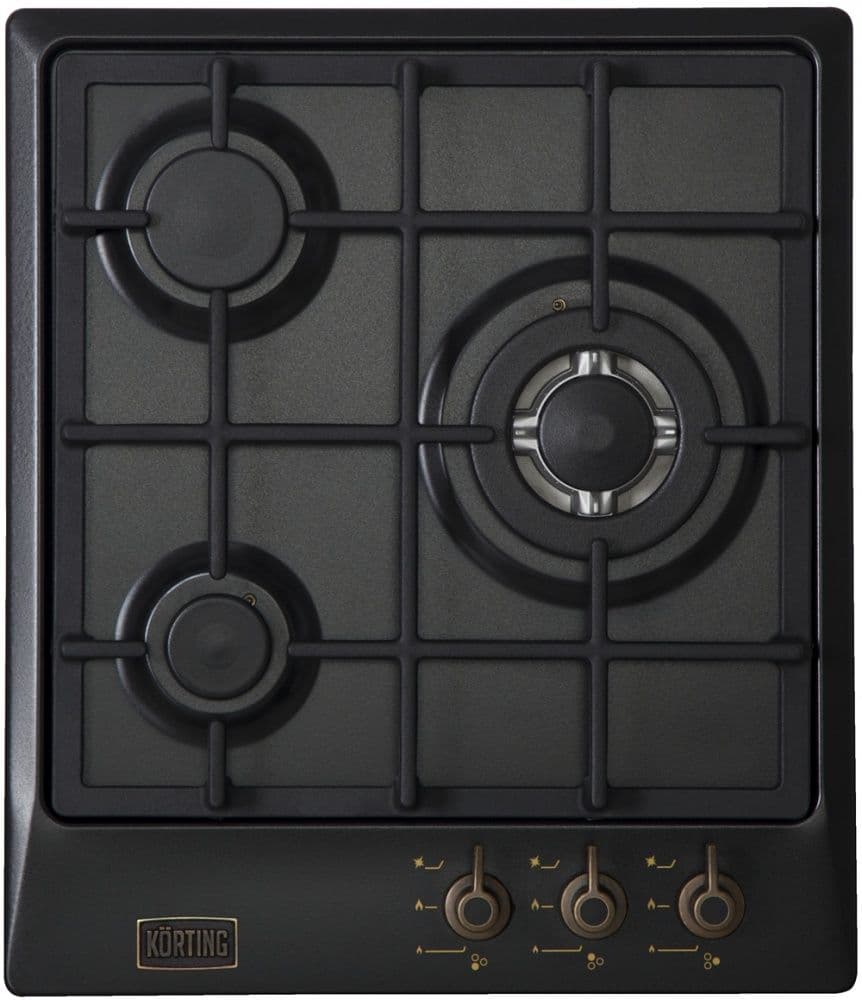 Газовая варочная панель Korting HG465CTRN эмалированная поверхность 3 конфорки независимая установка электроподжиг газ-контроль чугунные решетки поворотные переключатели ШхГ: 45х52 см
