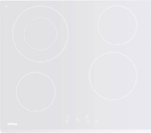 Электрическая варочная панель Korting HK62001BW стеклокерамическая поверхность 4 конфорки независимая установка защита от детей сенсорные переключатели кнопочное управление индикатор остаточного тепла ШхГ: 58х51 см
