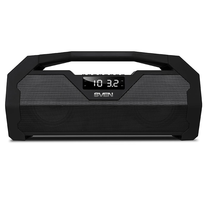 SVEN PS-470 Portable Bluetooth speaker, 18W (2 x 9W), 100Hz–20kHz, LED display, FM-tuner, microSD, USB Flash, Li-Ion 1800 mAh, USB (boxe portabile sistem acustic/колонки портативные акустическая сиситема) портативная акустика стерео мощность 2x9 Вт питание от батарей радиоприемник линейный вход Bluetooth воспроизведение с USB-накопителя поддержка карт памяти microSD