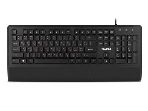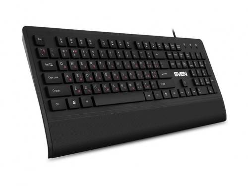 SVEN KB-E5500, Keyboard, 104 keys, 12 Fn-keys, Waterproof, Ergonomic Keyboard Rest, slim compact design, low-profile keys, Black