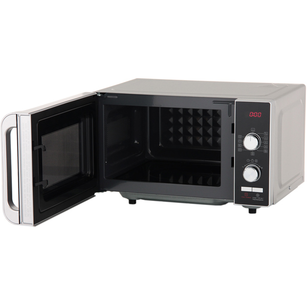 Микроволновая печь Midea AM720KFR-B/S объем 20 л мощность 700 Вт внутреннее покрытие камеры: эмаль поворотные тактовые переключатели дисплей защита от детейМикроволновая печь Midea AM 720KFR-B/S