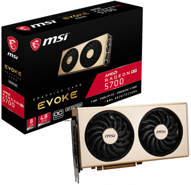 Видеокарта MSI Radeon RX 5700 EVOKE GP 8G OC / 8GB GDDR6 256Bit 1750/14000Mhz, RDNA, SP:2304Units(36CU), 1x HDMI, 3x DisplayPort, Dual fan - EVOKE Thermal design (Zero Frozr/Airflow Control Technology), 6mm Cooper Heatpipes,TORX FAN 3.0, SolidBackPlate, Retail Графический чип: RX 5700 Объем памяти: 8 ГБ Разрядность шины памяти: 256 бит Тип памяти: GDDR6 Тип системы охлаждения: Активная