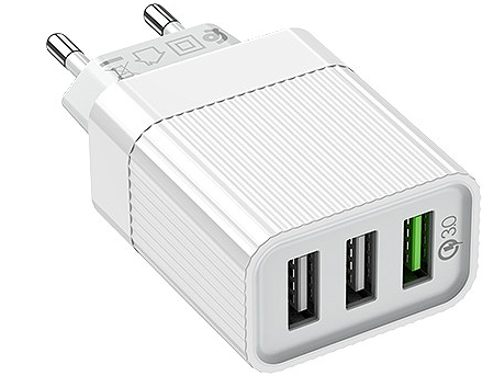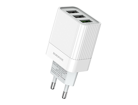 Borofone BA40A Speedway three-Port QC3.0 charger (EU) white, 723369 (incarcator universal/универсальное зарядное устройство для планшетов и смартфонов)