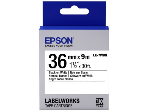 Tape Cartridge EPSON 36mm/9m, LK7WBN Std Blk/Wht 36/9, C53S657006 For Epson LabelWorks LW-1000P, LW-900P