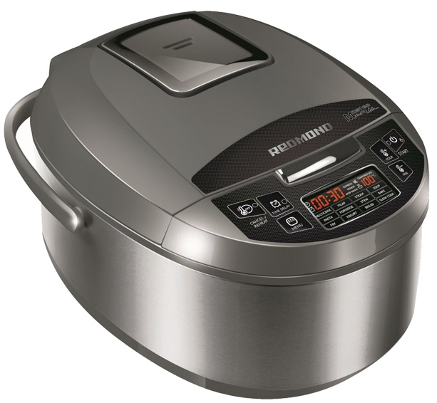 Multicooker Redmond RMC-M4510E, 700W, 5l ceramic container with non-stick surface, 40 Programs (13 Automatic & 27 Manual) LED display, silver Недорогая, но элегантная мультиварка REDMOND RMC-M4510 отличается строгим выдержанным стилем и уникально мощным для своей ценовой категории функционалом. В отличие от ее предшественниицы RMC-M4500, эта модель оснащена функцией МАСТЕРШЕФ ЛАЙТ, с помощью которой можно создавать свои собственные программы приготовления, а также менять температуру и время в автоматических программах. В M4510 установлены 13 автоматических программ, позволяющих без труда приготовить оригинальные и разнообразные блюда. Для тех, кто не имеет богатого кулинарного опыта, шеф-повара REDMOND разработали книгу «100 рецептов», адаптированную специально для данной модели. Объем чаши 5 л Мощность 1000 Вт Управление электронное Дисплей есть Количество программ 13 Приготовление первых блюд есть Приготовление каши есть Приготовление плова есть Приготовление на пару есть Тушение есть Жарка есть Йогурт есть Макароны есть Ручное управление есть Таймер отсрочки есть Поддержание тепла есть Скороварка есть Материал корпуса металл, пластик Внутреннее покрытие чаши антипригарное Цвет чёрный, нерж.сталь Габариты 242x283x271 мм Вес 5.3 кг Производитель Redmond