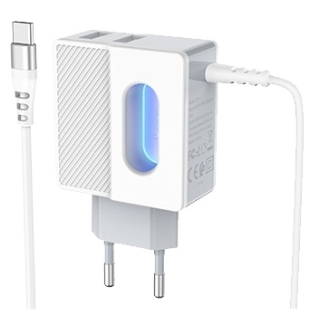 Hoco C75 Imperious dual port charger (Type-C) Input : 100-240V ~50/60Hz Max0.6A Output: 5.0V-2.0A Standard USB interface - Plug and use White Производитель:Hoco Модель:C75 Тип:Сетевой адаптер Количество USB портов:2 Ток заряда:2400мА Прочее:Кабель USB type C Цвет:Белый Размеры:65 x 36 x 25мм Вес:36г