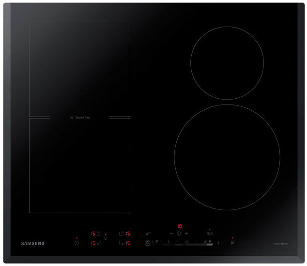Индукционная варочная панель Samsung NZ64H57479K/WT стеклокерамическая поверхность 4 конфорки независимая установка защита от детей сенсорные переключатели слайдерное управление индикатор остаточного тепла ШхГ: 60х52 см