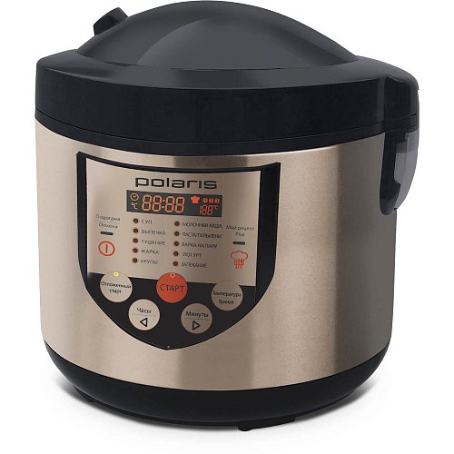 Multifierbator Polaris PMC 0351AD 3e Режимы работы: Мой рецепт Plus, Суп, Выпечка, Тушение, Жарка, Крупы, Молочная каша, Паста/Пельмени, Варка на пару, Йогурт, Запекание. Многофункциональный LED дисплей. Поддержание температуры 24 часа. Таймер отсрочки до 24 часов позволяет приготовить еду к назначенному времени. Сохранение программы при сбое электропитания – 2 часа. Отмена автоматического подогрева. Антипригарное покрытие чаши. Чашу можно мыть в посудомоечной машине. Объем 3 литра позволяет приготовить блюдо до 5 порций. Съемный шнур. Съемный паровой клапан. Аксессуары: - контейнер для варки на пару; - мерная чашка; - плоская ложка; - половник. Книга рецептов в подарок. Объем чаши, л 3 л Покрытие чаши Антипригарное Количество программ 10 Мощность, Вт 600 Вт.