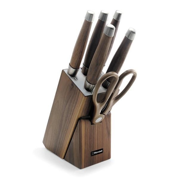 Set de cutite Rondell RD-984 Количество предметов 7 Материал лезвия нерж. сталь Материал рукоятки дерево Материал подставки дерево Ножницы кухонные есть Нож поварской 1 Нож Сантоку 1 Нож универсальный 1 Нож для овощей 1 Нож разделочный 1 Производитель Rondell