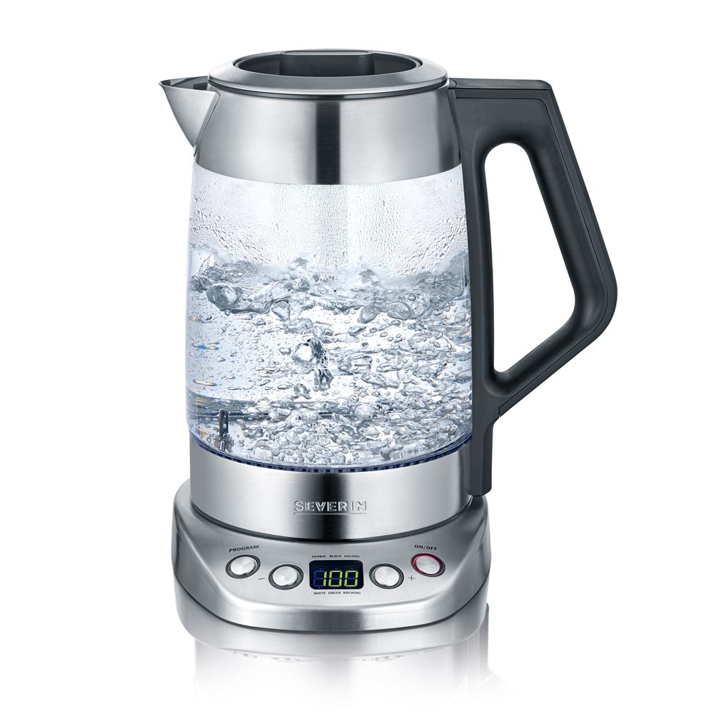 Kettle Severin WK-3479, Glass, 3000W, 1,5l, concealed heating element, 360° swivel base, temperature mode 40-100C, inox объем 1.7 л мощность 3000 Вт. индикация включения, дисплей, поддержание тепла закрытая спираль установка на подставку в любом положении заварочный чайник в комплекте корпус из стали и стекла выбор температуры нагрева воды