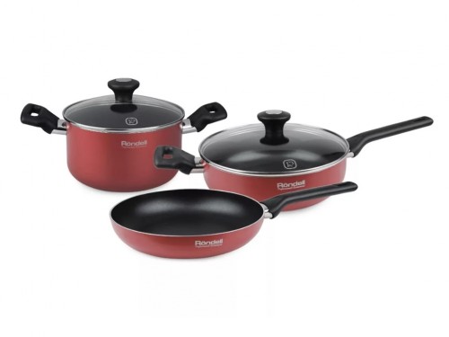 Набор посуды Rondell RDA-887 кастрюля: 20 см; сковорода: 24 см; сотейник: 24 см; 2 крышки материал корпуса: алюминий антипригарное покрытие тип конфорок: газовые, электрические, галогеновые, стеклокерамические материал крышек: стекло особенности: крышка с паровыпуском