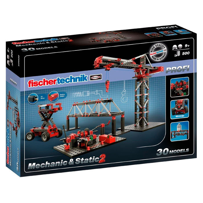 FischerTechnik Profi - Mechanic & Static 2 Рекомендуемый возраст : 9+ Модель : PROFI Mechanic & Static 2 Тип : Конструктор Другие функции : 30 модели, 500 компонентов