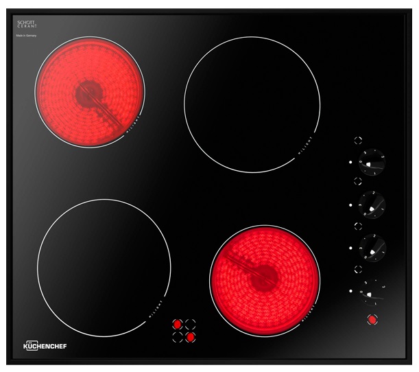 Варочная панель Kuchenchef KHC600S стеклокерамическая поверхность 4 конфорки независимая установка поворотные переключатели индикатор остаточного тепла ШхГ: 57.50х50 см