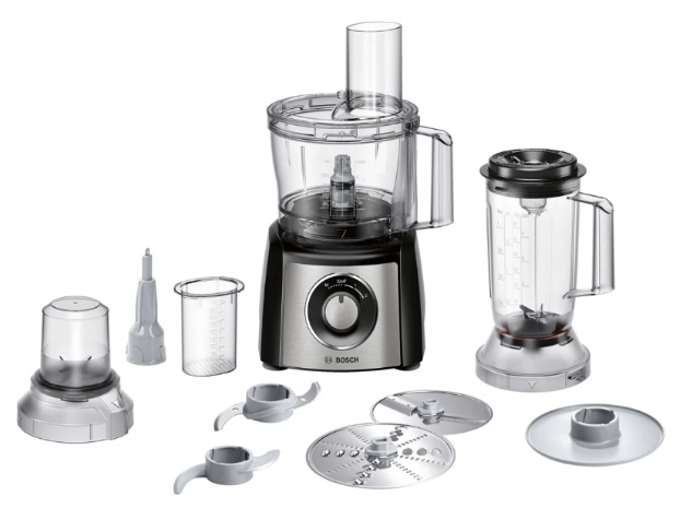 Кухонный комбайн Bosch MCM3501M, 800W power output, bowl 2.3 l, beater, whisk, dough hook, blender, 3 speed level plus moment level, stainless steel/black мощность: 800 Вт объем чаши: 2.3 л блендер, мельничка, терка, насадка для взбивания, универсальный нож компактное хранение насадок