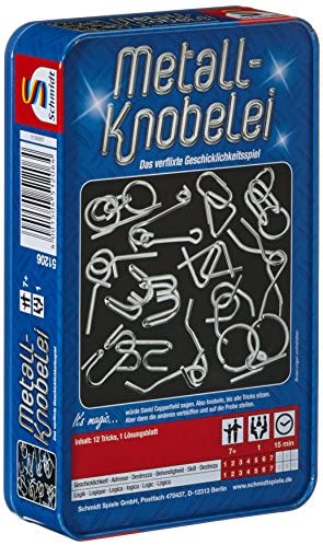 M-METALL KNOBELEI Настольная игра "Железная Логика" Интересная логическая игра "Железная логика", Schmidt. Цель игры: разъединить соединенные части не применяя силы и не разбирая их. В наборе: 12 металлических головоломок. Игра предназначена для взрослых и детей от 7 лет.