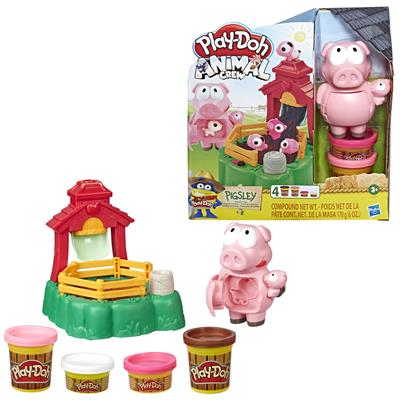 PD PIGSLEY SPLASHIN PIGS Набор для лепки Play-Doh "Озорные поросята" Что творится в этом веселом свинарнике? Всё, что вы только можете себе вообразить! Знакомьтесь с мамой Пигсли - эта фигурка свинки имеет формочку внутри живота, так что с ее помощью вы сможете слепить множество веселых поросят! Поместите поросят в свинарник и нажмите на ведро с едой - они начнут весело подпрыгивать. А чтобы заставить их просто визжать от восторга, загрузите массу в крышу свинарника и нажмите на нее, чтобы грязь разлилась по базу! Ваши поросята будут счастливы, ведь больше всего на свете они любят поваляться в грязи! В комплекте: 1 фигурка свиньи Пигсли, 1 свинарник, 4 баночки массы для лепки. Для детей от 3-х лет.
