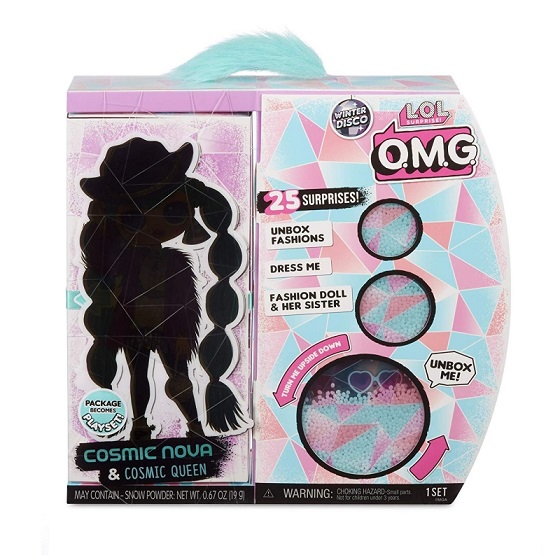 L.O.L. Surprise! OMG Winter Disco Cosmic Nova&Cosmic Queen 561804 LOL Surprise Winter Disco Cosmic Nova Fashion Doll & Sister — это фешн кукла из новогодней серии Winter Disco, в которой тебя ждут невероятно модные старшие сестры ЛОЛ! На данный момент в серии 4 стильных куклы ЛОЛ с 25 сюрпризами внутри: Cosmic Nova, Dollie, Snowlicious, 24K D.J. Но это не все! Помимо LOL OMG, в коробке ты найдешь ее сестренку cosmic Queen. Коробочка от фэшн куколки становится местом для хранения ее гардероба и местом отдыха. В набор ЛОЛ ОМГ Зимнее Диско входит: Модная одежда; Стильная обувь; Обувная коробка; Аксессуары; Коробка для шляпы; Кошелек; Расчестка; Чехлы для одежды; Подставка для куклы; Кукла LOL OMG Cosmic Nova.