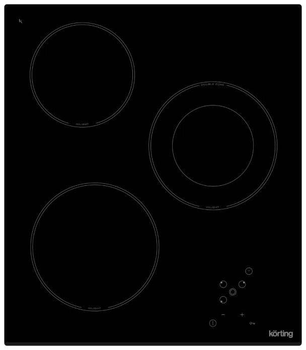 Варочная панель Korting HK42031B vitroceramica стеклокерамическая поверхность 3 конфорки независимая установка защита от детей сенсорные переключатели кнопочное управление индикатор остаточного тепла ШхГ: 44х51 см