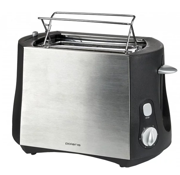 Toaster Polaris PET0804A, 800W, 2 slices of toast, variable browning control, inox на 2 тоста мощность 800 Вт механическое управление ненагревающийся корпус решетка для подогрева булочек, поддон для крошек