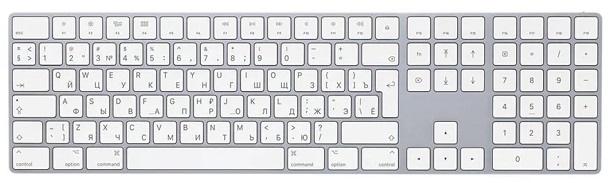Apple Magic Keyboard with Numeric Keypad Silver беспроводная клавиатура интерфейс Bluetooth для настольного компьютера классическая конструкция, мембранная клавиш: 109 размеры (ШxВxГ): 419x11x115 мм вес: 390 г