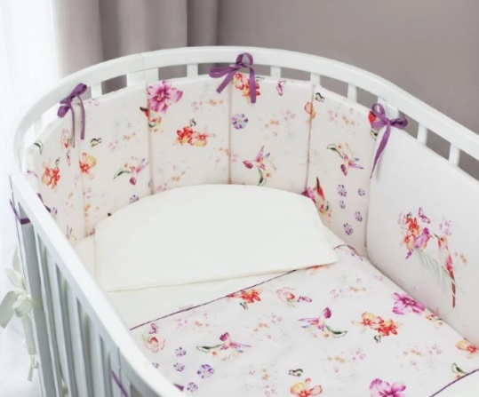 Комплект постельного белья для детей "Акварель Oval" т.м.Perina, арт. АО6-125х75 (страна пр-ва: РБ) Белый Материал сатин, полиэстер, эвкалипт Размеры 125x75 Элементов в комплекте 6 Пододеяльник 92x122 Одеяло 90x120 Простынь 112x162 Бортик 37x326 Наволочка 34x52 Подушка 34x52 Цвет белый, фиолетовый Особенности для овальных кроваток Производитель Perina