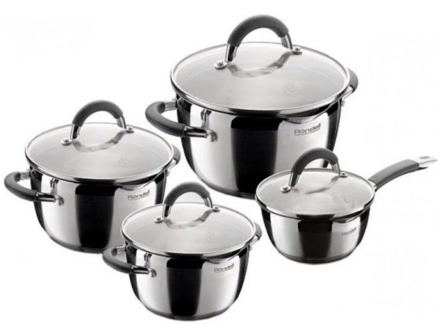 Set Rondell RDS-040, Set, Stainless steel Количество предметов 8 Материал нерж. сталь Полировка матовая и зеркальная Материал крышки жаропрочное стекло Кастрюли 3 Ковш 1 Тип нагрева газовая плита, галогеновая плита, индукционная плита, стеклокерамическая плита, электрическая плита Производитель Rondell