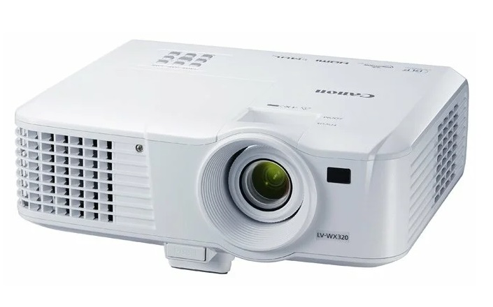 Projector Canon LV-WX320; DLP, WXGA, 3200Lum, 10000:1, 1.1x Zoom, LAN, White DLP проектор для домашнего кинотеатра встроенные динамики: 1 x 10 Вт размер изображения от 1.52 до 4.57 м разрешение проектора: 1280x800 световой поток 3200 лм контрастность 10000:1 поддержка 3D входы VGA, HDMI, S-Video, композитный, компонентный, аудио mini jack уровень шума: 36 дБ вес 2.5 кг