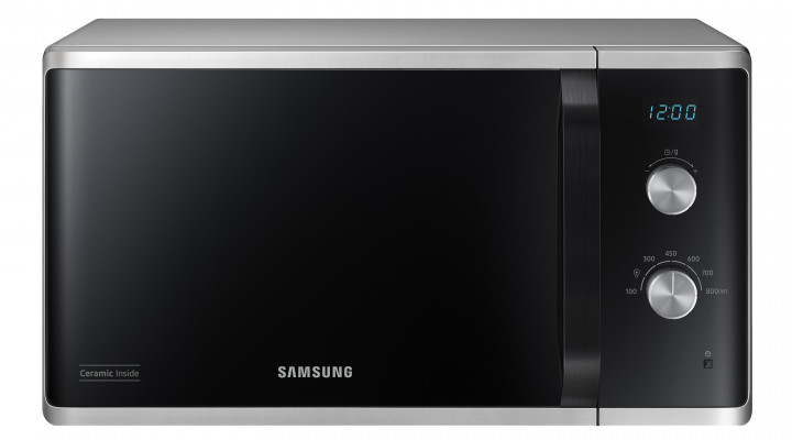 "Microwave Oven Samsung MS23K3614AS/BW , 23l, 1150W, mechanical control, 28.8 cm rotating plate, defrost function,interior lighting, silver "