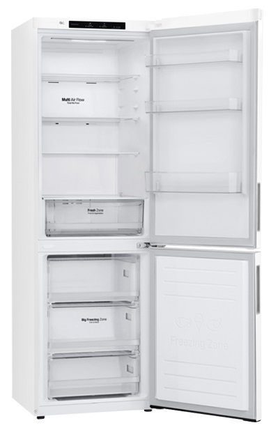 Холодильник LG GA-B459CQCL (186см/341л/А+/Full NoFrost) Холодильник комби, нижнее распололожение морозильника Размораживание - Full NoFrost Общий объем 341 л. Объем холодильной камеры 234 л Объем морозильной камеры 107 л Класс энергопотребления: A+
