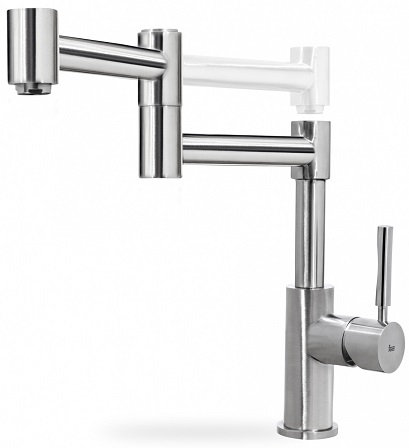 Teka INX 983 INOX (AISI 304) Излив с шарниром для удобства наполнения кастрюли водой, не снимая ее с варочной поверхности Выполнен из хирургической высококачественной стали (AISI 304) - антибактериальная, с гигиеническим эффектом Поворотный излив добавляет удобство в использовании Противонакипной аэратор защищает от налёта Цвет: нержавеющая сталь Имеет керамический картридж диаметром 33 мм. Противоизвестковая система - Anti-scale. Максимальная толщина столешницы 54 мм. Смеситель впечатляет своими внешними формами, чистой геометрией и тщательно подобранными материалами. выступ: 190 мм угол поворота излива: 3600 гибкий подвод воды G 3/8 керамический картридж максимальная толщина столешницы: 54 мм