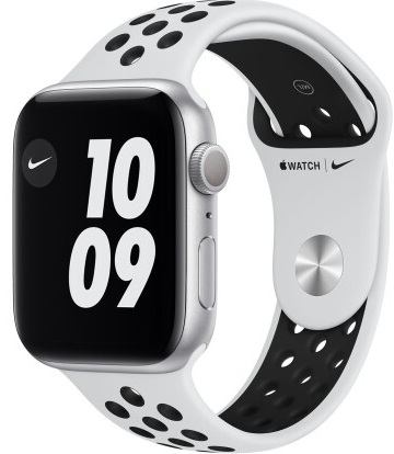 Apple Watch Series 6 GPS, 44mm Silver Aluminium Case with Pure Platinum/Black Nike Sport, MG293 GPS