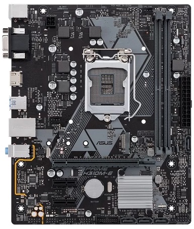 Материнская плата ASUS PRIME H310M-E, Socket 1151, Intel® H310 (9th/8th Gen CPU), Dual 2xDDR4-2666, 1xPCIe X16, CPU Intel graphics, VGA, HDMI, 4xSATA3, 1xM.2, 2xPCIe X1, ALC887 HDA, GbE LAN, 4xUSB3.1, 5X Protection III, mATX форм-фактор: microATX сокет LGA1151 v2 2 слота DDR4 DIMM, 2133-2666 МГц 1 слот M.2 PCI-E/SATA 3.0 1 слот PCI-E x16 разъемы на задней панели: HDMI, D-Sub звуковая схема 7.1