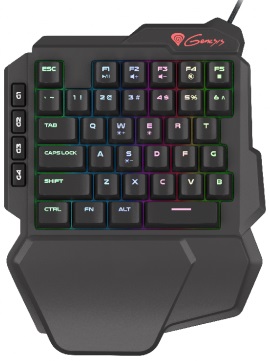 Genesis Mechanical Keypad Thor 100, RGB Blacklight, Red Switch Компактные клавиатуры типа keypad становятся с каждым днем популярнее. Genesis Thor 100 RGB — это программируемая механическая клавиатура, предназначенная специально для геймеров. Кроме своих небольших размеров, она имеет много практических функций, которые облегчают геймплей. Игрок получает: 39 программируемых клавиш с красными механическими свитчами; софт, позволяющий редактировать профили, макросы и режимы подсветки; а также подсветку RGB (16 миллионов цветов). Эргономичная подставка под запястье гарантирует комфорт во время многочасовых игр, а компактный размер позволяет брать ее с собой на турниты или LANы.