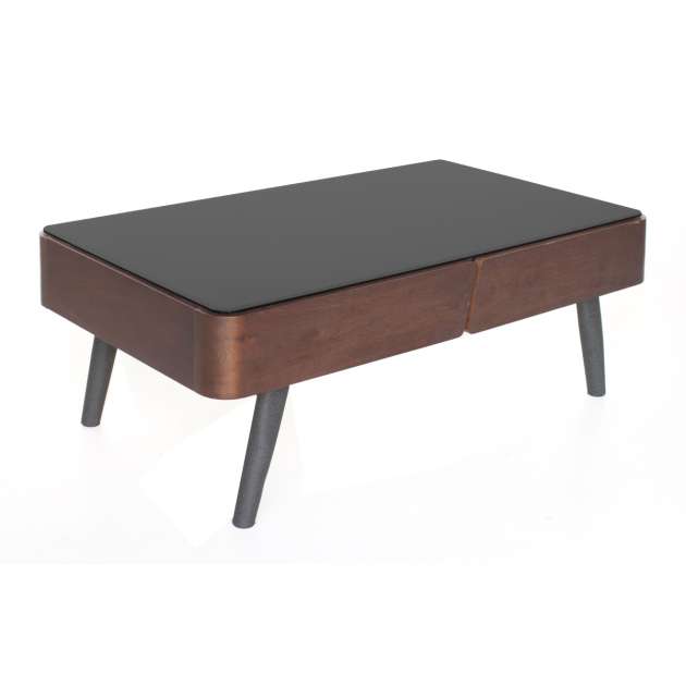 Masa de cafea are cadru din placaj furniruit cu picioare metalice vopsite electrostatic si suprafata din sticla securizata. Dimensiuni: (115X65 cm).