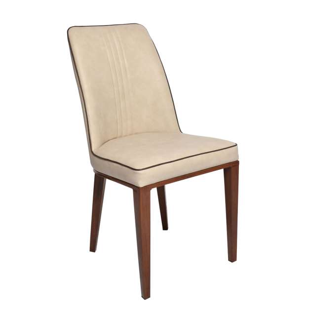 Stil: modern Cadru: metal vopsit in imitatie lemn prin tehnologia transprint Tapiterie: piele artificiala Dimensiuni: Latime: 47 cm Adancime: 56 cm Inaltime: 93 cm Inaltime pana la sezut: 47 cm Inaltime spatar: 48 cm Latime sezut: 47 cm Adancime sezut: 44 cm