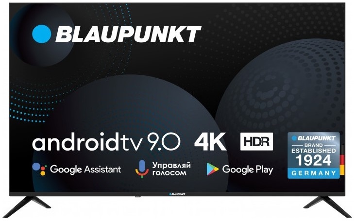 Телевизор 50" LED Blaupunkt 50UN265, Black (3840x2160 UHD, SMART TV, 60 Hz, DVB-T/T2/C/S2) (50", Black, 3840x2160 UHD, 60Hz, SMART TV (Android 9.0 Pie), 2 HDMI, 2 USB, DVB-T/T2/C/S2, CI+ slot, LAN, OSD Language: ENG, RO, RU, Speakers 2x8W, Voice Control Диагональ 50" (127 см) LED Разрешение 3840x2160 4K UHD SMART TV есть WI-Fi есть Тюнеры DVB-C / T2 / S2 Интерфейсы HDMI,LAN,USB Размеры (с подставкой) 1117x697x214 мм Размеры (без подставки) 1117x645x63 мм Звук 20 Вт (2х10 Вт) VESA (крепление) 200х200мм