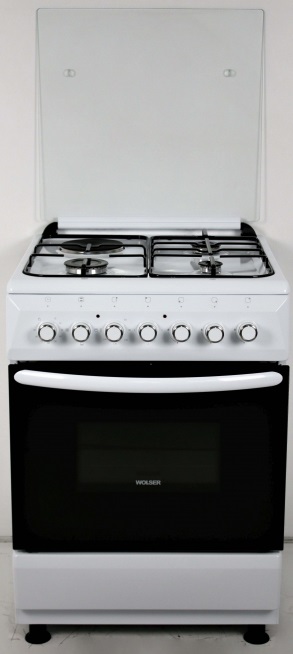 Комбинированная плита Wolser WL-60603 WGE Тип: комбинированная плита Цвет: белый Кол-во газовых конфорок: 3 Кол-во электрических конфорок: 1 (1000 Вт) Решетки: эмалированные Материал поверхности: эмаль Крышка поверхности: стекло Электроподжиг конфорок Механический таймер Тип духовки: электрическая Двойное стекло духовки Глубокий противень + хромированная решетка Регулируемые ножки Тип газа: натуральный газ+ есть возможность переналадки на пропан бутан Габариты: 60*60*85 см