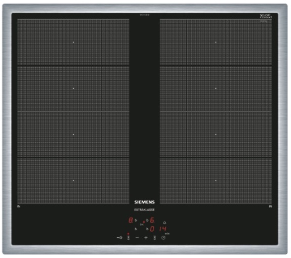 Индукционная плита SIEMENS EY645CXB1M линейка: iQ700 материал панели: стеклокерамика количество конфорок: 4 установка: зависимая защита от детей: есть рамка: есть распознавание наличия посуды: есть переключатели: сенсорные управление: кнопочное таймер: есть, звуковой с отключением индикатор остаточного тепла: есть ШхГ: 58.30х51.30 см.
