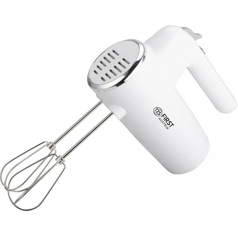 Миксер FIRST 005263-2 Тип: ручной Мощность: 300 Вт Количество скоростей: 6 Режим Turbo: есть Крюки для теста: есть Венчики для взбивания: есть